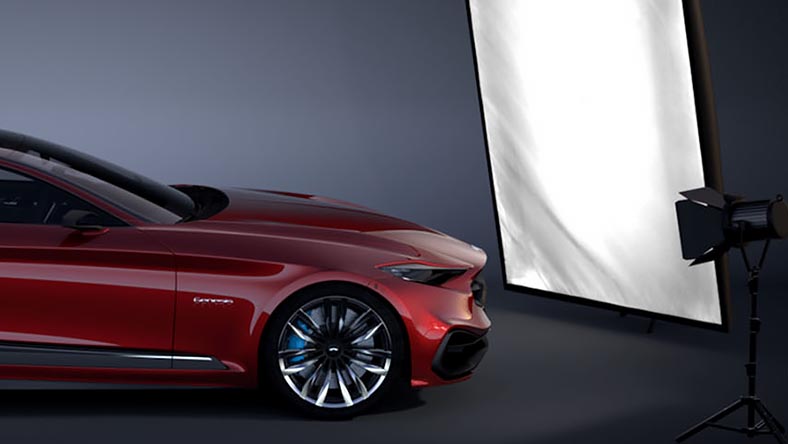 Use a wide range of photorealistic automotive virtual prototyping materials such as glass, car paint, and metal.