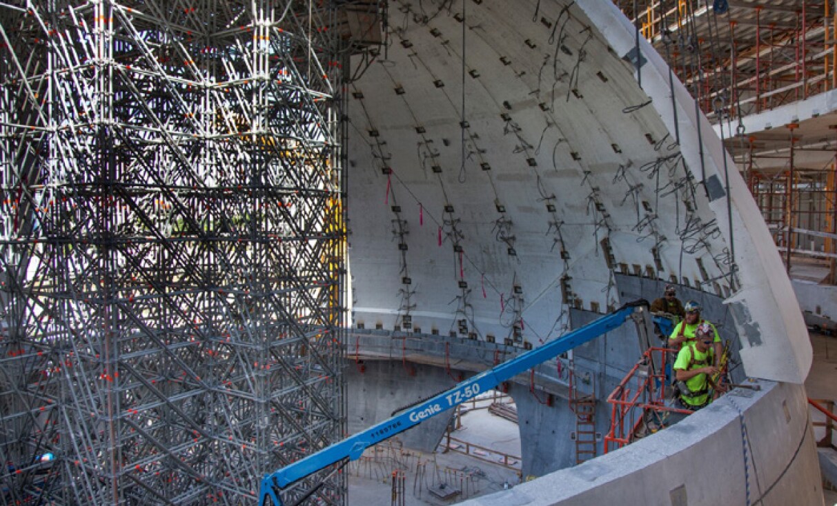 “It’s really easy to build big square boxes. But when you have a roof that is elliptical in nature, the geometric challenges are many. The manner in which the steel has to provide a framework for all of the other trades and finishes requires a lot of precision, and it’s more difficult to be precise along an ellipse.”