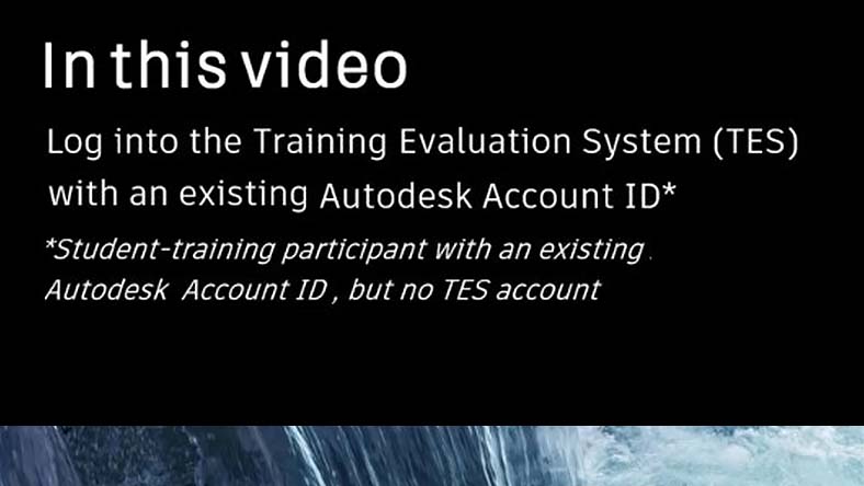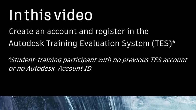 Learn how to register your Autodesk Training Evaluation System (TES)account and get started. This video is for new training participants who don't yet have a TES account, or an Autodesk ID